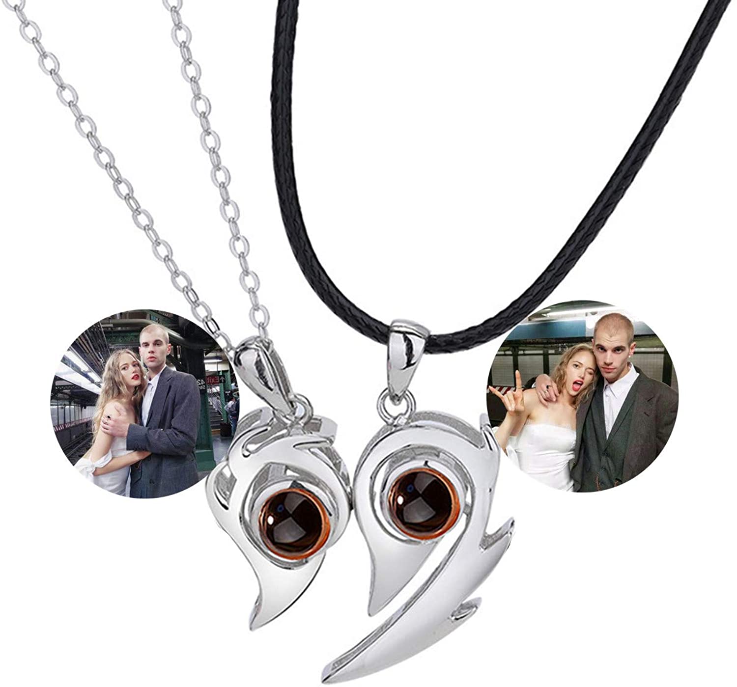 Custom Magnetic Flame Heart 100 Languages I Love You BFF Couples Necklaces