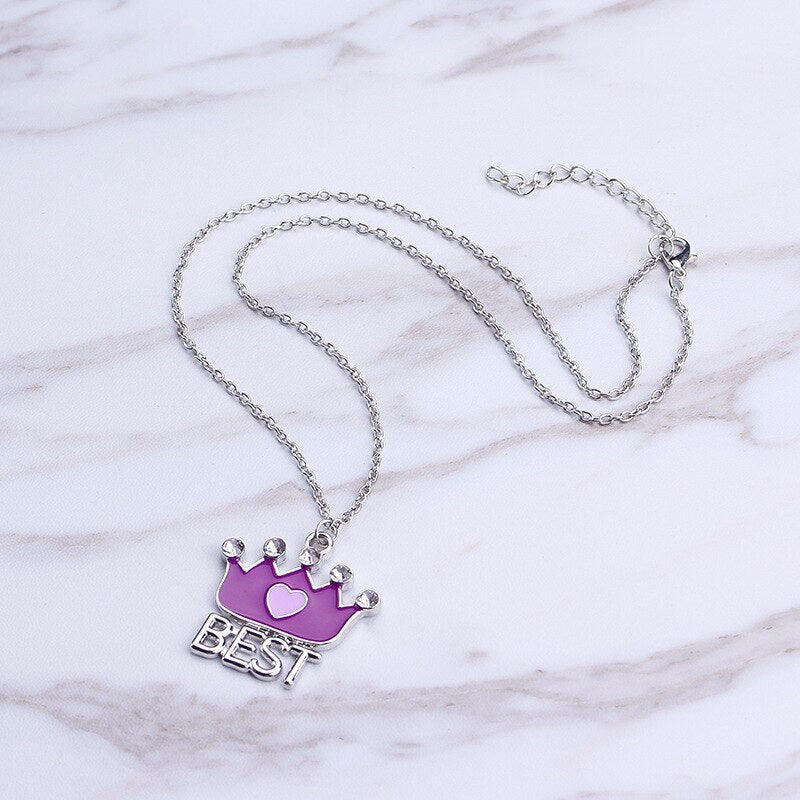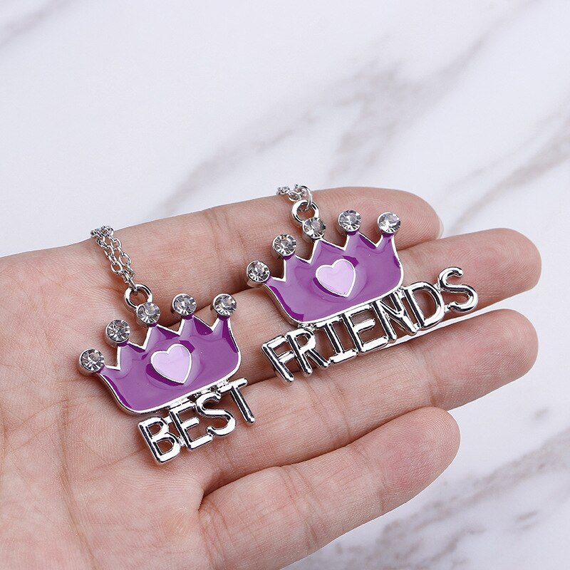 2pcs/sets Best friends crown stitching Pendant Necklaces BFF Friendship crystal Jewelry Gifts girlfriends
