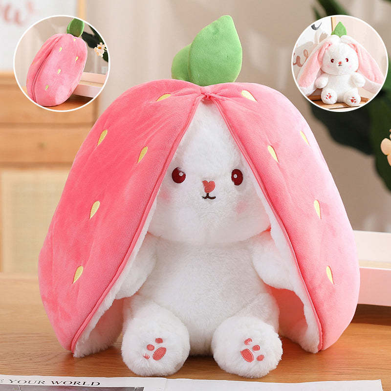 Creative Funny Doll Carrot Rabbit Plush Toy Stuffed Soft Bunny Hiding In Strawberry Bag Toys For Kids Girls Birthday Gift