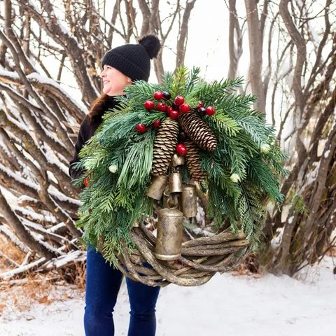 - Materials: Pine cones, berries, bells, vines, and artificial green plants.