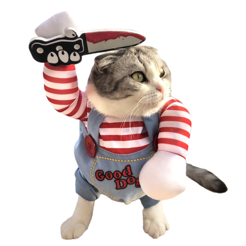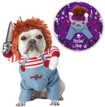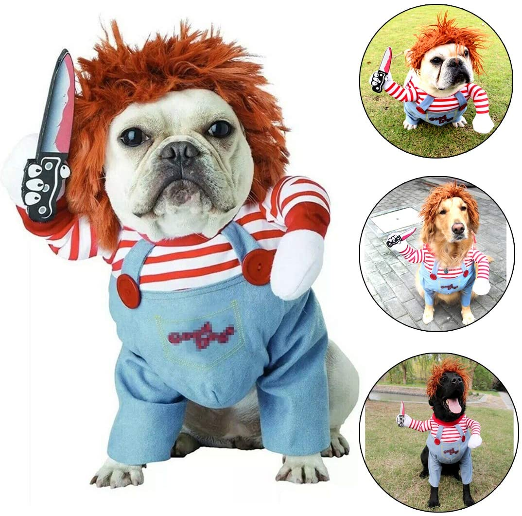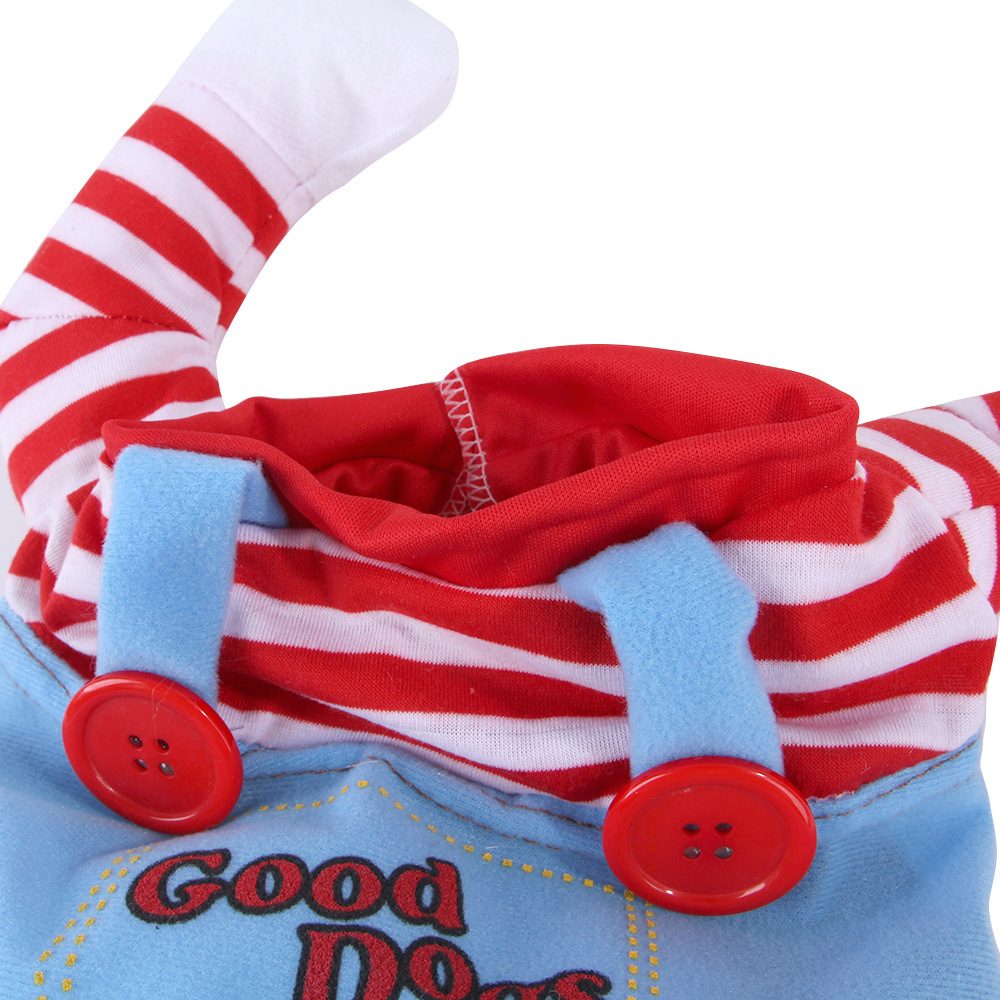 1.Material: Funny Halloween dog costume, outer material:cotton; soft and durable,keep your dog feel comfortable all the day.2.Features: Stylish, fun, soft and durable, headwear, easy to put on and take off, machine washable, beautiful details.3.Suitable: Four seasons universal.Keeps your pet warm and cozy throughout any outdoor activity. It is for Halloween,Christmas, family photos, parties, holidays and daily wear,it makes your friend looks Handsome and interesting.4.Great for festival parties, bring your pet into the entertainment you have at the festival. Can be widespread on Halloween. Christmas, New Year, etc.5.Please measure your dog carefully and refer to our size chart before you place a order for it. If your dog's measurements fall between two sizes, please select the larger size.
