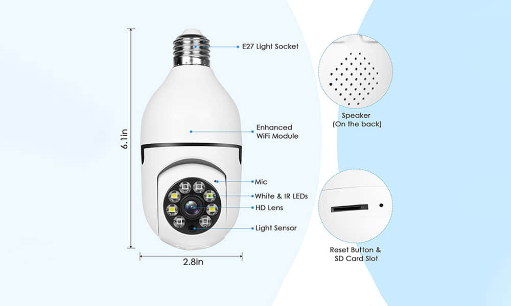 ✅ Easy Installed - Connect the bulb camera to the power source, you can use our equipped E27 socket, or use your own.no breaking the wall, no wiring, simple and convenient.
