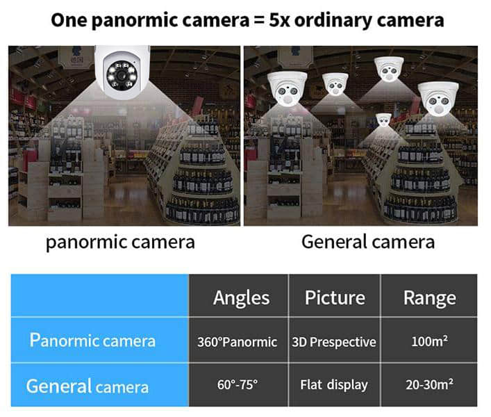 It's small, compact and very unassuming. Ultra-crisp 1080P lens with 360°panoramic infrared that rotates 360°, white lights support better night vision, two way audio, blaring alarms to scare away intruders and Auto Tracking functions guard your home and keep an eye for you 24/7!
