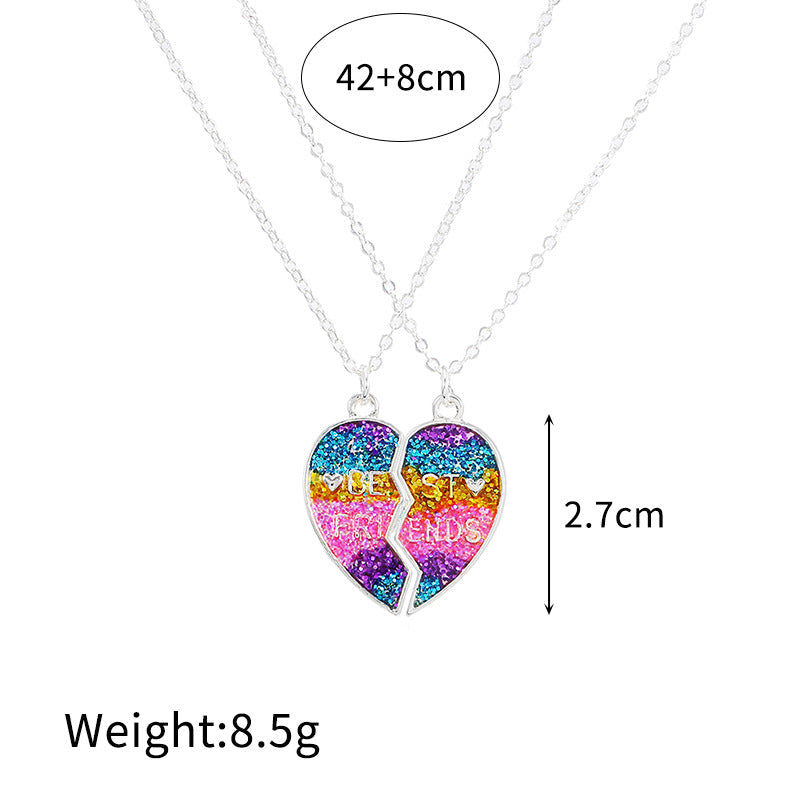 2Pcs/Set Gradient Color Heart-shaped Magnetic Stitching BFF Friendship Necklace