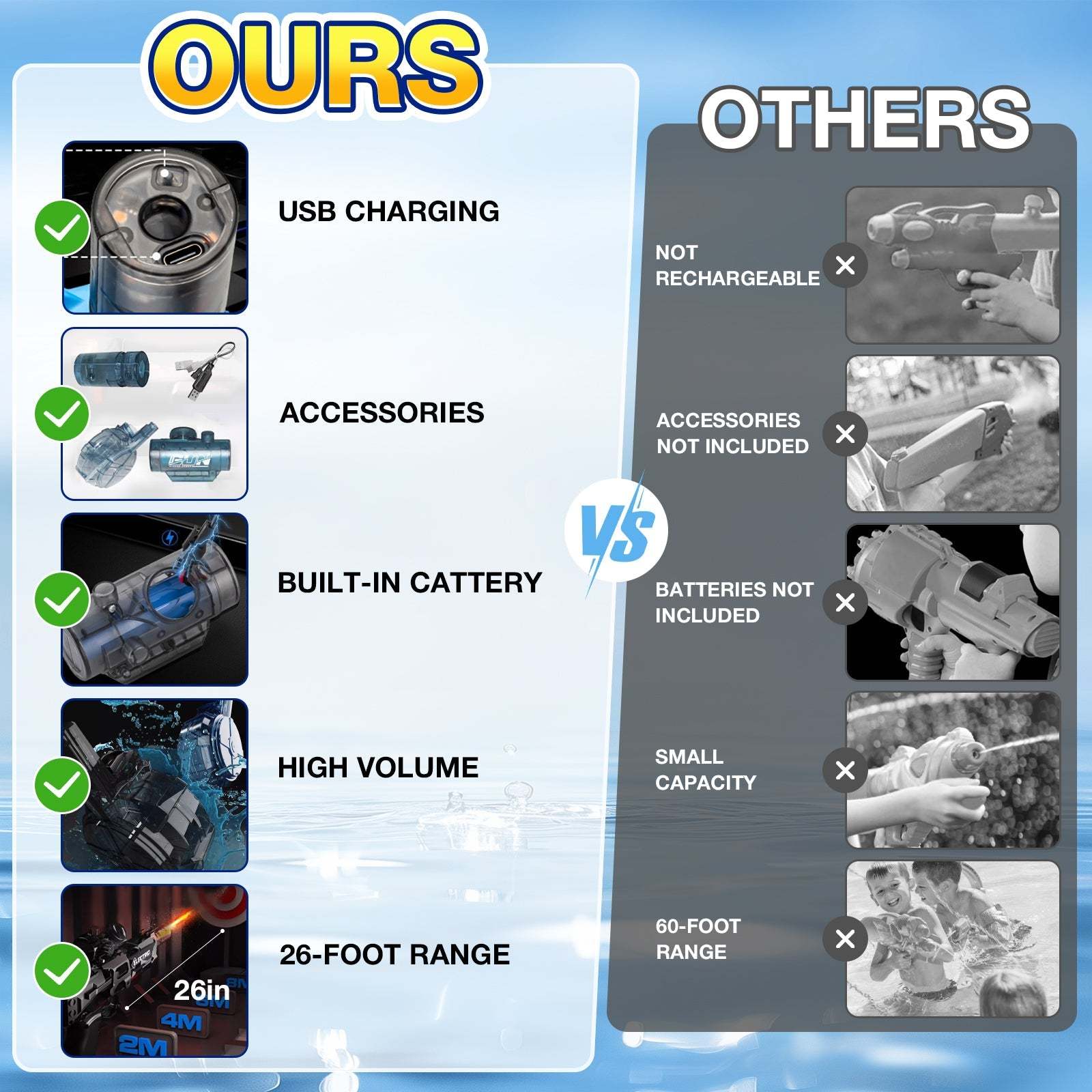 With our Long Range Electric Water Gun, enjoy effortless, continuous firing and hit targets from afar.