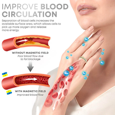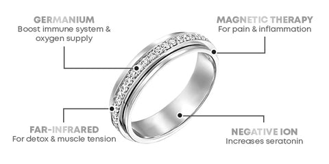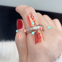 Typical magnetic products either use magnets with minimal magnetic field penetration or cause like poles to repel, creating a dead zone between the magnets. VIKANDA Thermogenic Moissanite Spinner Ring uses an Alternating North-South Polarity Orientation to maximize the magnetic field flow also release the electromagnetic charge to offer for remove blockages around the body and restore a natural flow of energy.