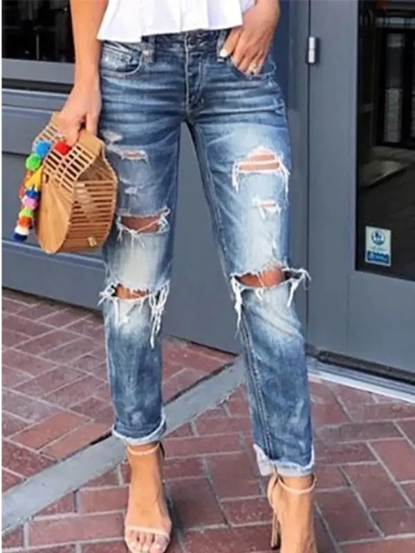 Women's Loose Boyfriend Jeans Stretchy Ripped Distressed Denim Pants