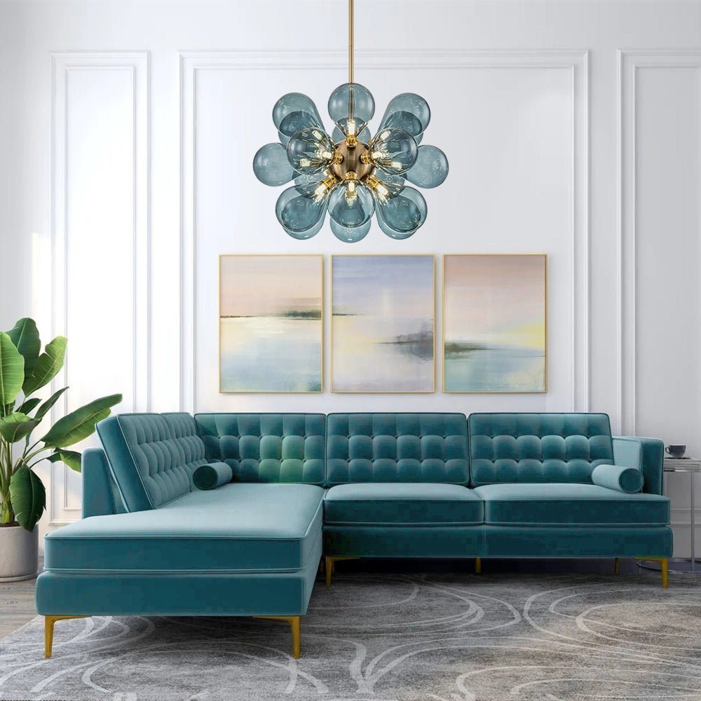 Contemporary Aesthetic: With its sleek lines, minimalist silhouette, and handcrafted glass shades, this chandelier embodies contemporary elegance. The combination of modern design elements and artisanal craftsmanship results in a versatile lighting fixture that complements a wide range of interior styles, from chic urban lofts to sophisticated suburban homes.