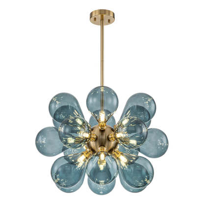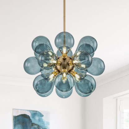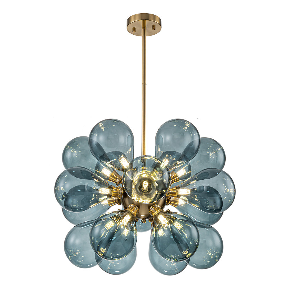 The Contemporary 18-Light Hand-Blown Glass Cluster Chandelier is a stunning lighting fixture that combines contemporary design with exquisite craftsmanship to create a captivating centerpiece for any space. Featuring eighteen hand-blown glass shades arranged in a clustered formation, this chandelier exudes elegance and sophistication, adding a touch of modern flair to your home or commercial setting.