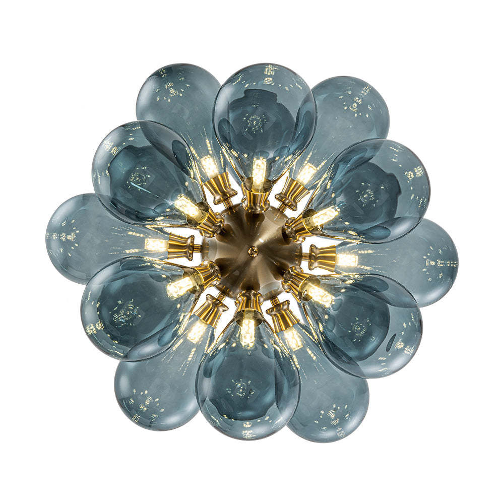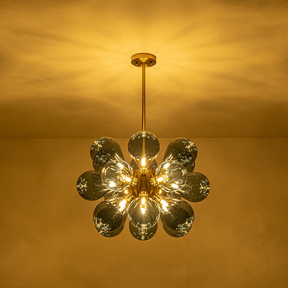 Hand-Blown Glass Shades: Each glass shade is meticulously hand-blown by skilled artisans, resulting in unique variations in shape, texture, and color. The organic, irregular forms of the glass shades create a visually dynamic effect, while the subtle variations in hue add depth and dimension to the chandelier.