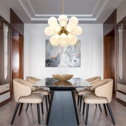 In summary, the Modern 18-Light Hand-Blown Glass Cluster Chandelier is a stunning lighting fixture that combines contemporary design, artisanal craftsmanship, adjustable height, high-quality construction, and versatile application to create an exceptional lighting solution for modern interiors. Whether used to illuminate a dining area, living space, or commercial venue, this chandelier adds beauty, elegance, and ambiance to any environment.