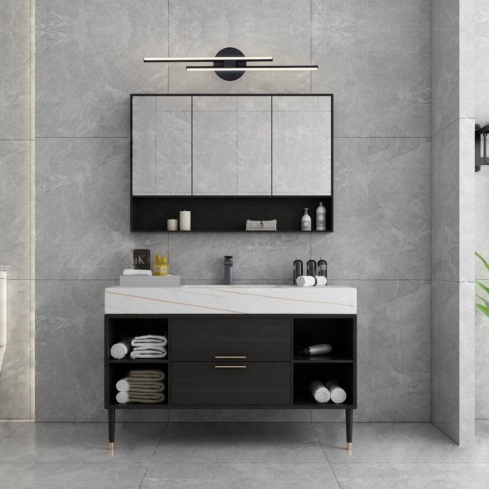 - Linear Design: This vanity light features a linear design with two integrated LED light sources, providing even and balanced illumination across your vanity area. The clean lines and geometric silhouette lend a modern aesthetic to your bathroom decor, complementing a wide range of interior styles.
