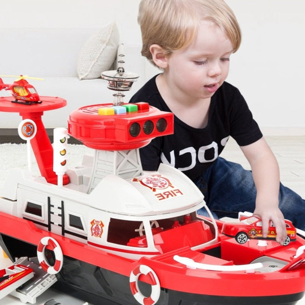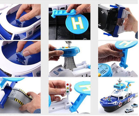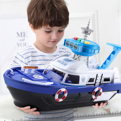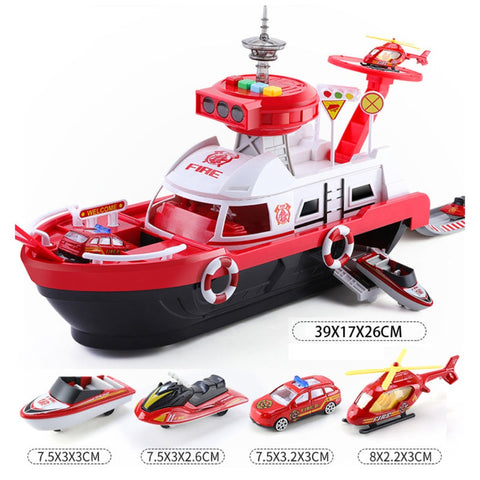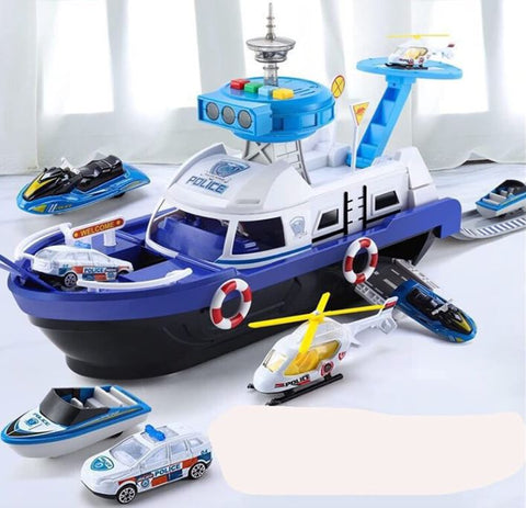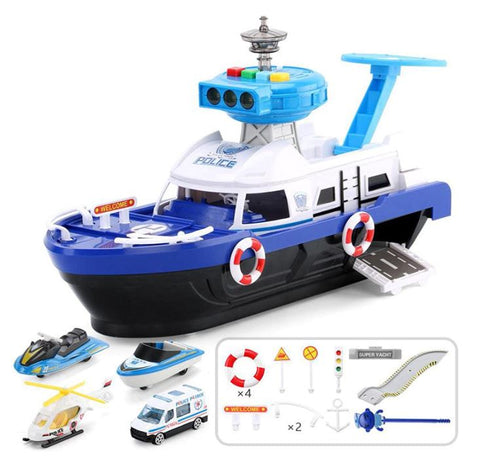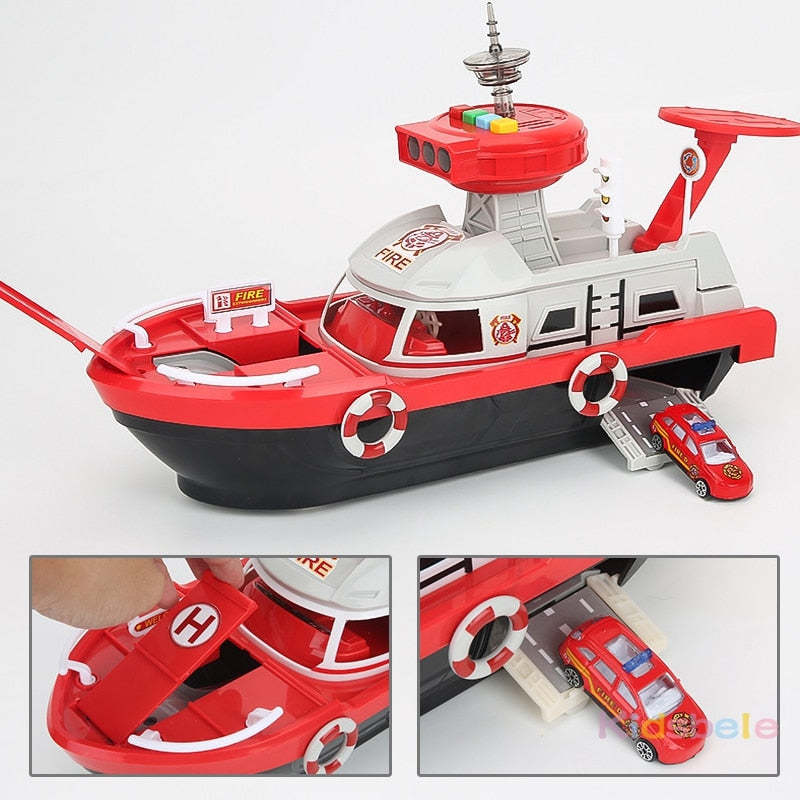 Fireman Police Car Cargo Ship Toy Boat Playset (2 Colors)