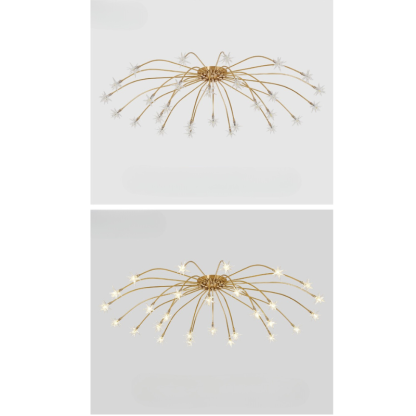 • Radial Star Design: The Radial Star Flush Mount Ceiling Light features a stunning radial star pattern that creates a mesmerizing visual effect when illuminated. The intricate design adds a sense of drama and grandeur to your ceiling, making it a focal point in any room.