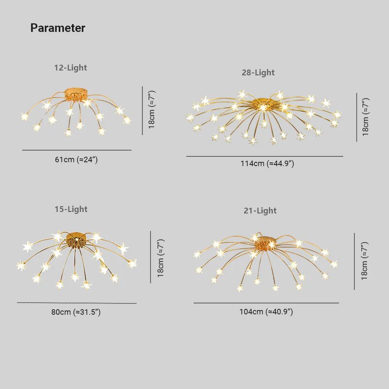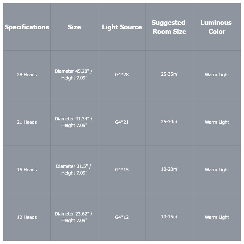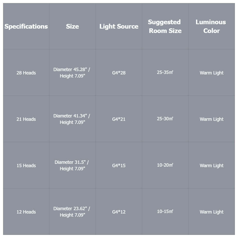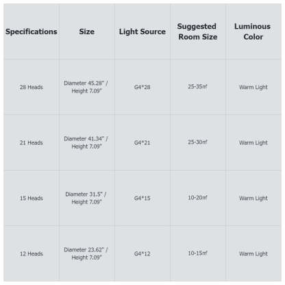 • Customizable Options: Available in four different sizes (12, 15, 21, and 28 heads) and three color options, including warm white, natural white, and cool white, this ceiling light allows you to customize the size and color temperature to suit your preferences and interior decor.