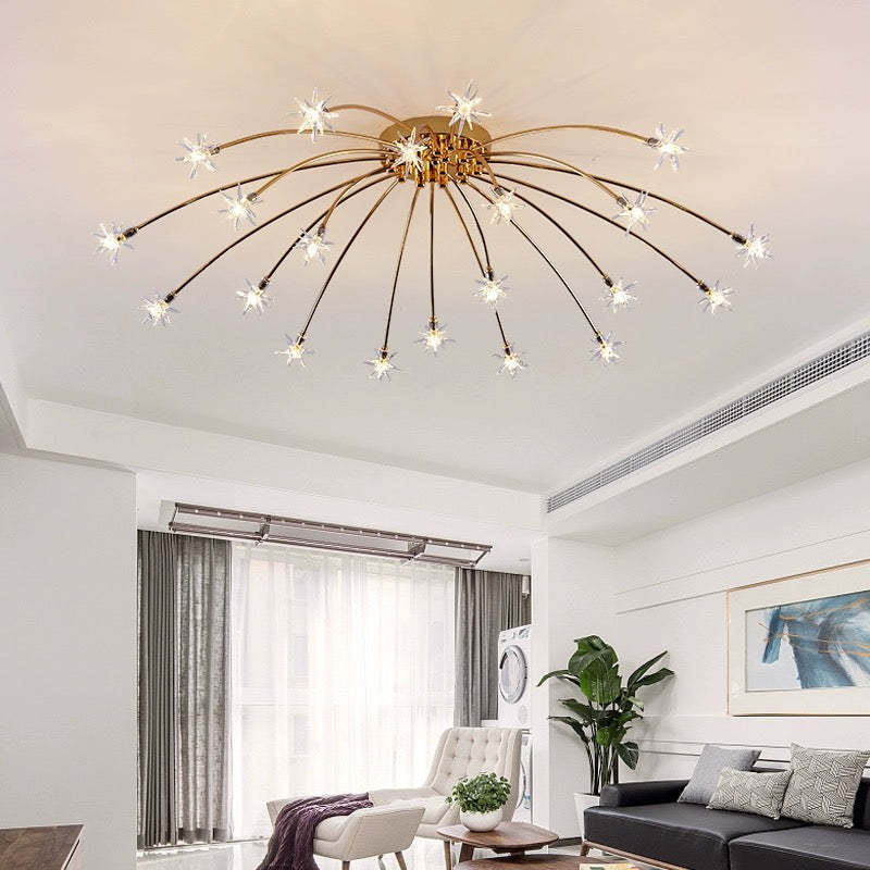 Introducing the Radial Star Flush Mount Ceiling Light, a captivating lighting fixture designed to elevate the ambiance of any room. With its striking radial star design and customizable features, this ceiling light adds a touch of elegance and sophistication to your living space.