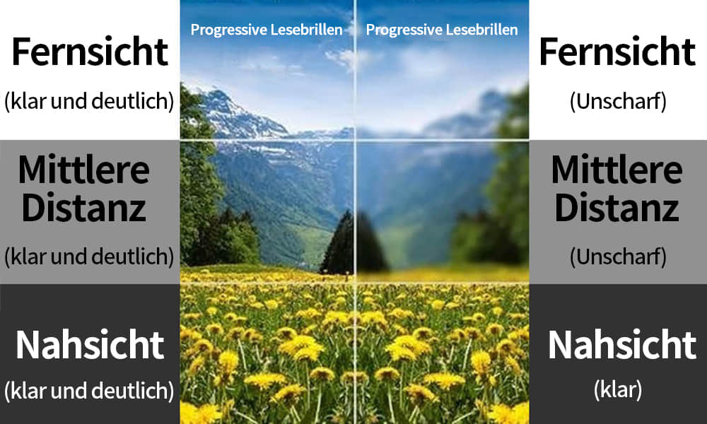 Werfen wir außerdem einen Blick auf den Vergleich zwischen Gleitsicht-Lesebrillen und herkömmlichen Lesebrillen: