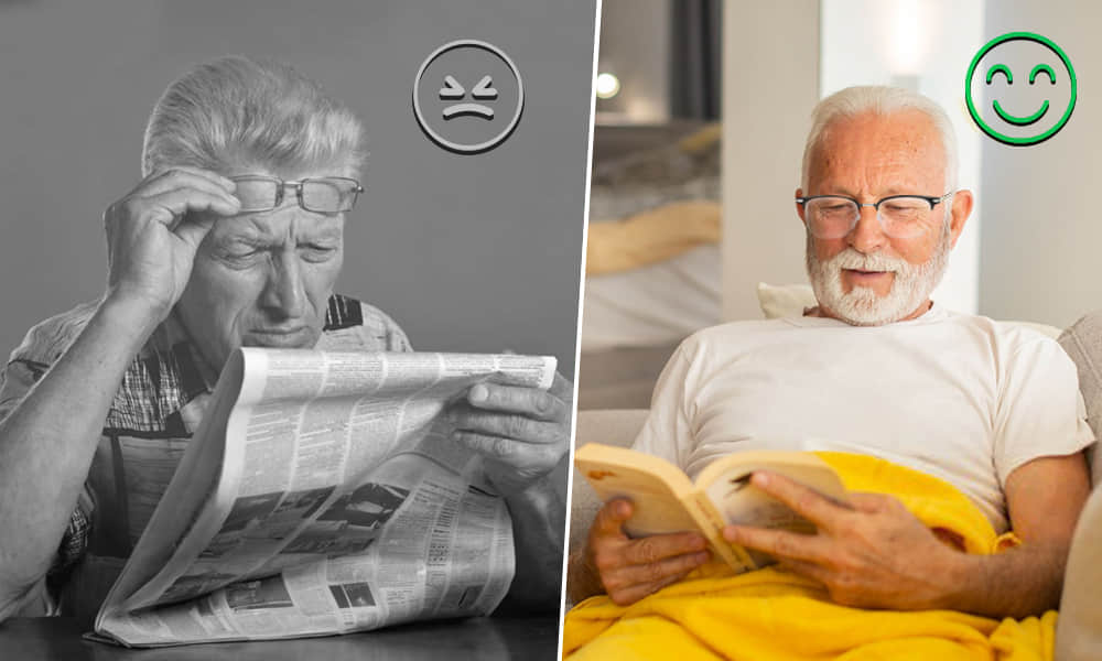 Jetzt kann mein Opa wieder problemlos lesen und in neue Welten eintauchen. Diese Brille hat Glück und Liebe in unser Zuhause gebracht. Danke, Yomody!